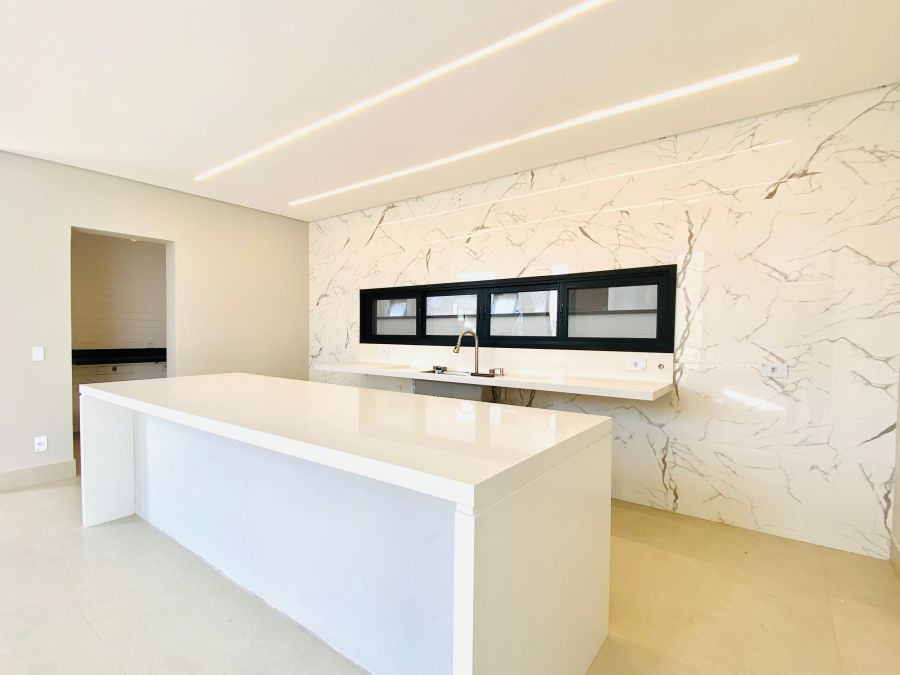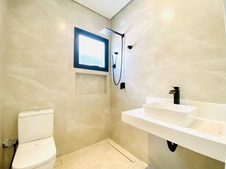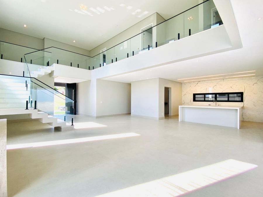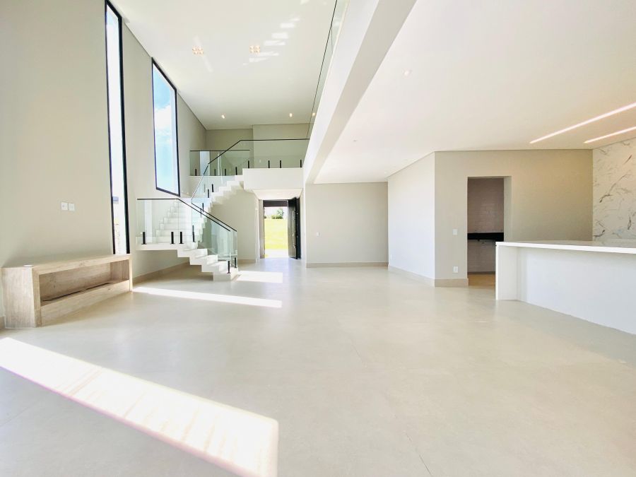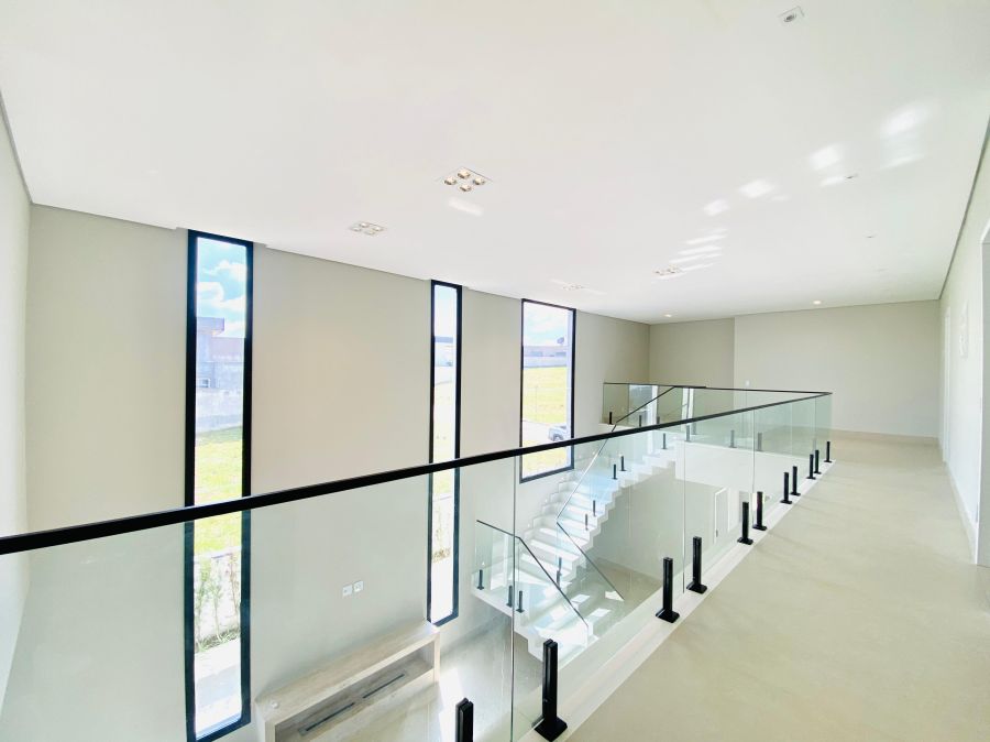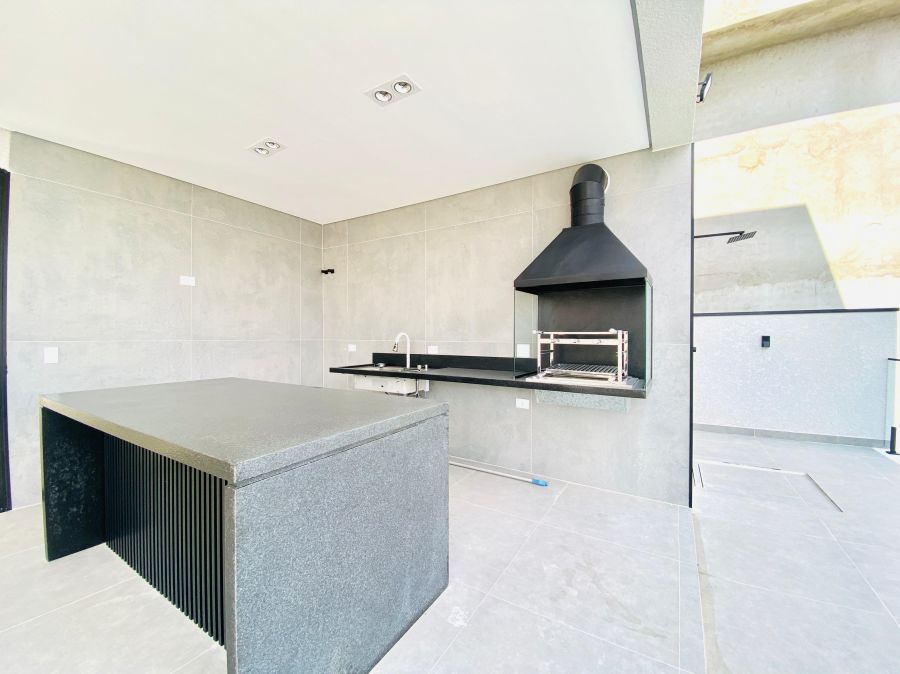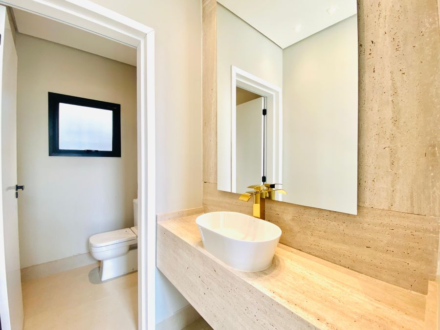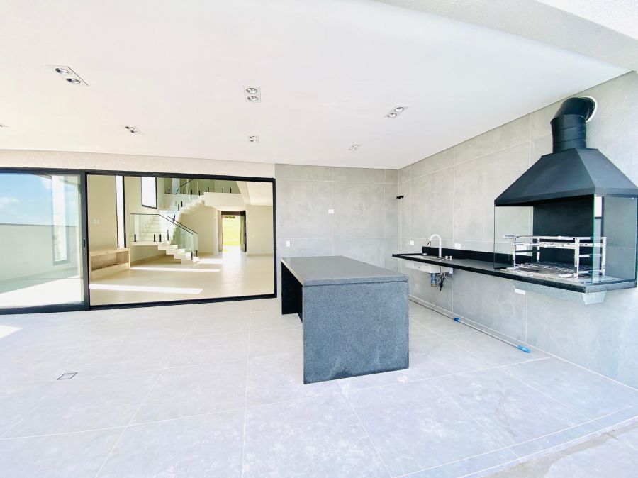 Belíssima casa com 350,00 m² de área construída em terreno de 420,00 m², novíssima, moderna, cômodos amplos e muito bem distribuídos, ambiente totalmente clean, esquadrias pretas ornando com os metais, com 04 suítes, sendo no piso superior, 01 master com closet e sala de maquiagem com espelho tipo camarim, banheiro com cuba dupla e ducha dupla e uma grande sacada com pergolado, e mais outras 02, também com closet e sacada e 01 no piso inferior, também com closet, podendo ser utilizada como escritório, sala de estar com pé direito duplo, sala de jantar e cozinha super moderna (os três ambientes são integrados), lavabo, despensa, lavanderia, área gourmet, piscina integrada ao spa, banheiro piscina, depósito.