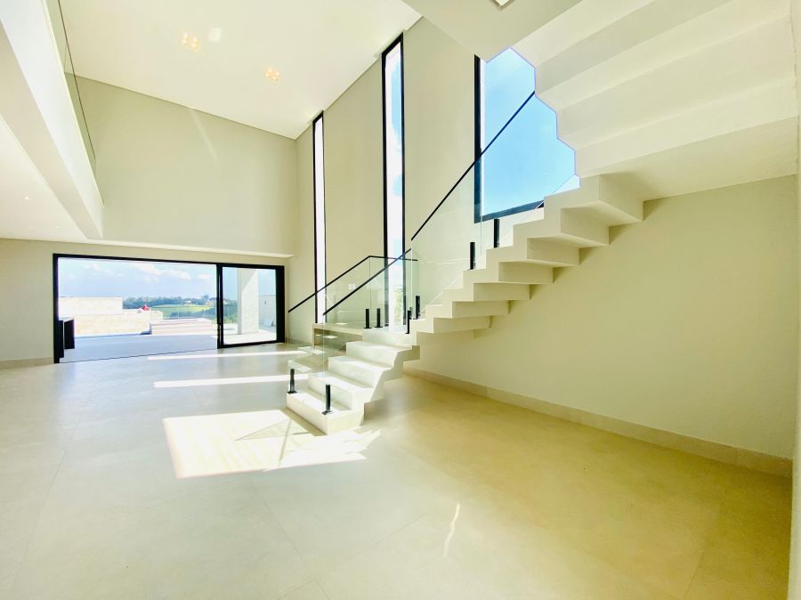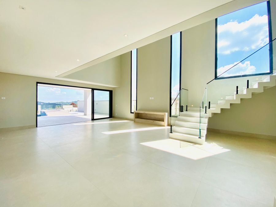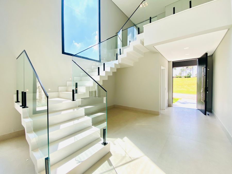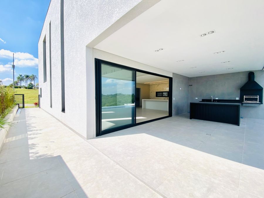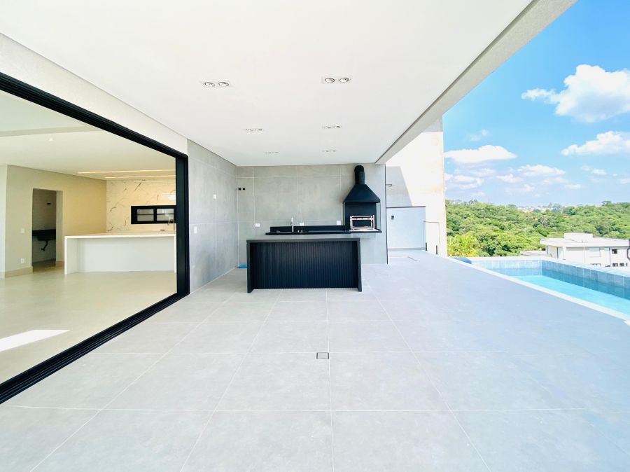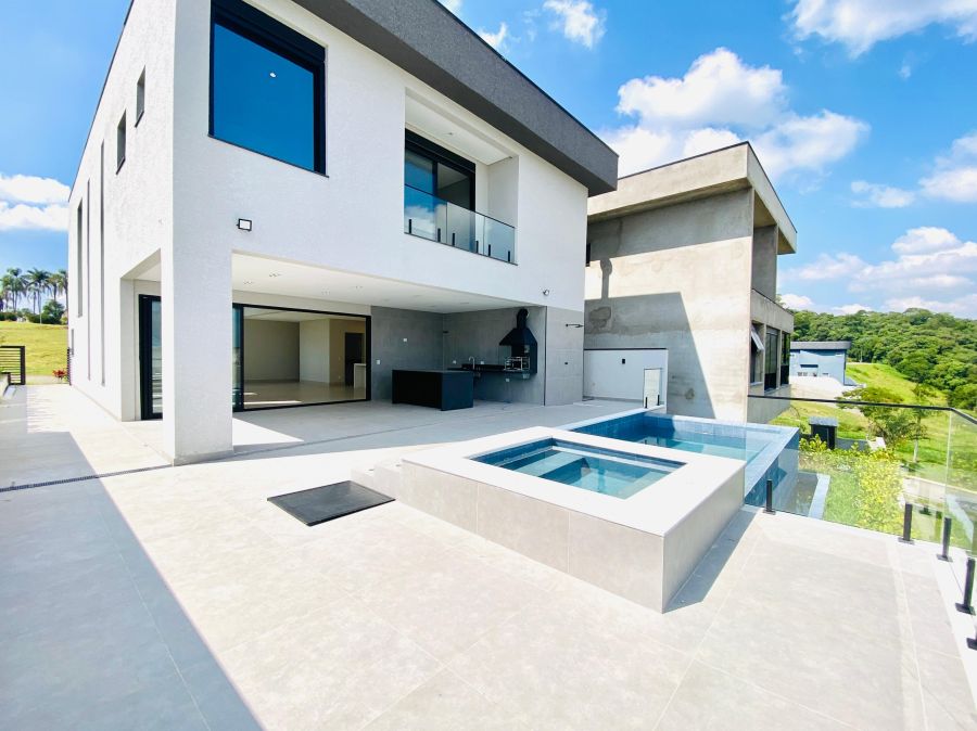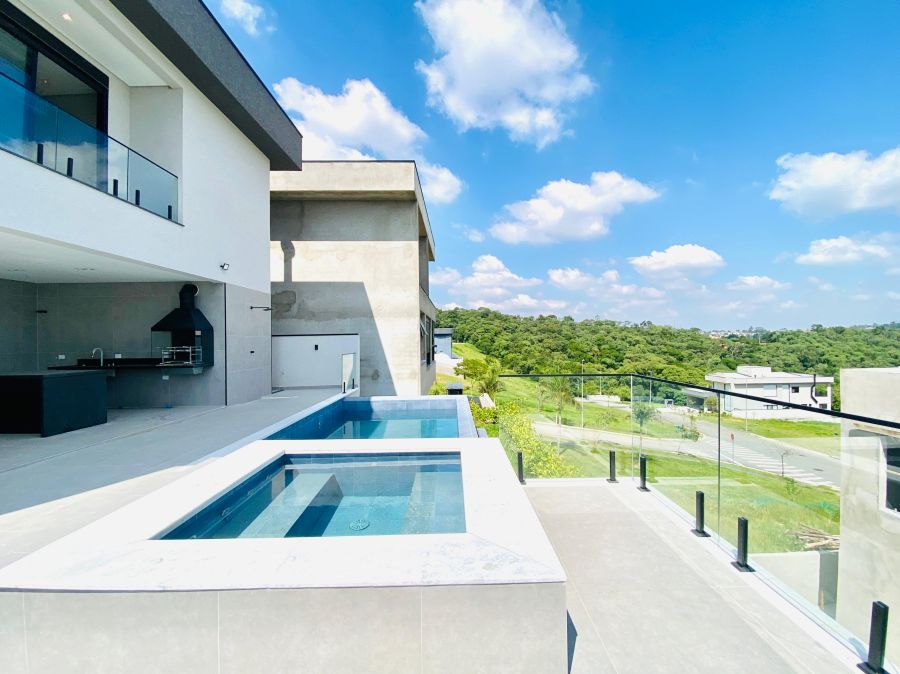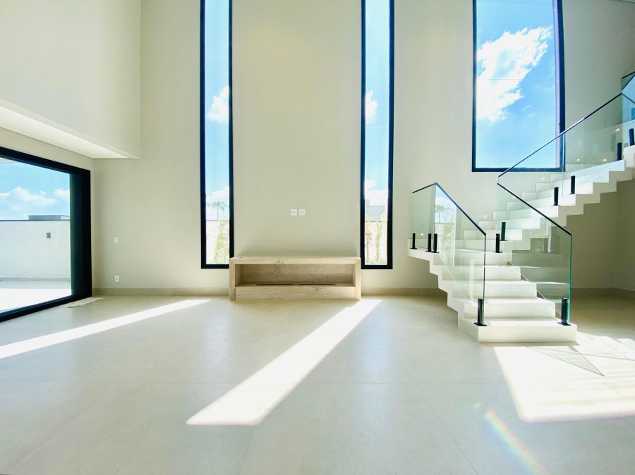 Belíssima casa com 350,00 m² de área construída em terreno de 420,00 m², novíssima, moderna, cômodos amplos e muito bem distribuídos, ambiente totalmente clean, esquadrias pretas ornando com os metais, com 04 suítes, sendo no piso superior, 01 master com closet e sala de maquiagem com espelho tipo camarim, banheiro com cuba dupla e ducha dupla e uma grande sacada com pergolado, e mais outras 02, também com closet e sacada e 01 no piso inferior, também com closet, podendo ser utilizada como escritório, sala de estar com pé direito duplo, sala de jantar e cozinha super moderna (os três ambientes são integrados), lavabo, despensa, lavanderia, área gourmet, piscina integrada ao spa, banheiro piscina, depósito.