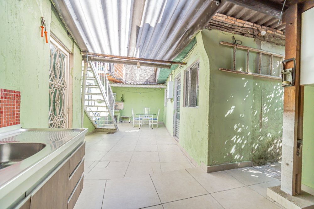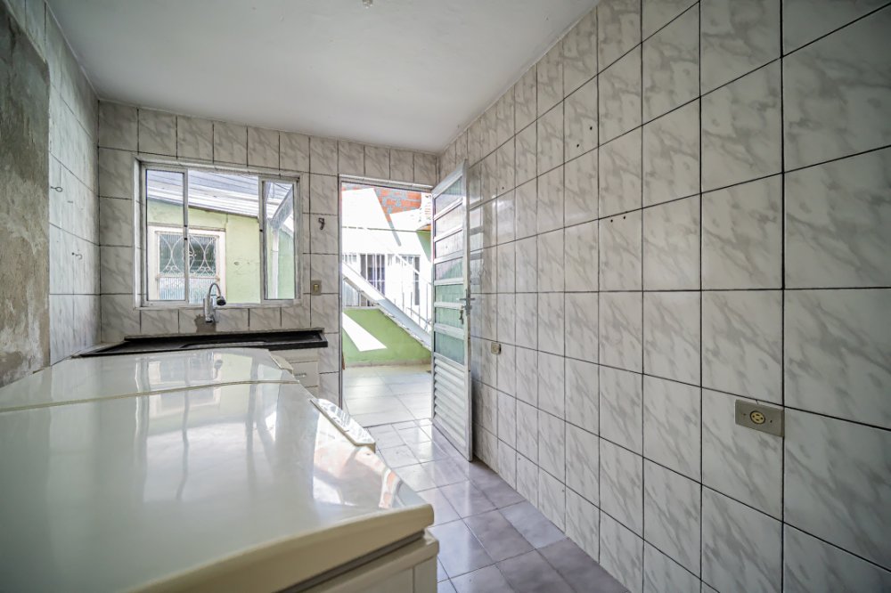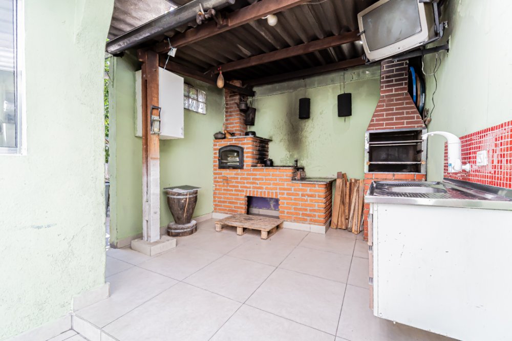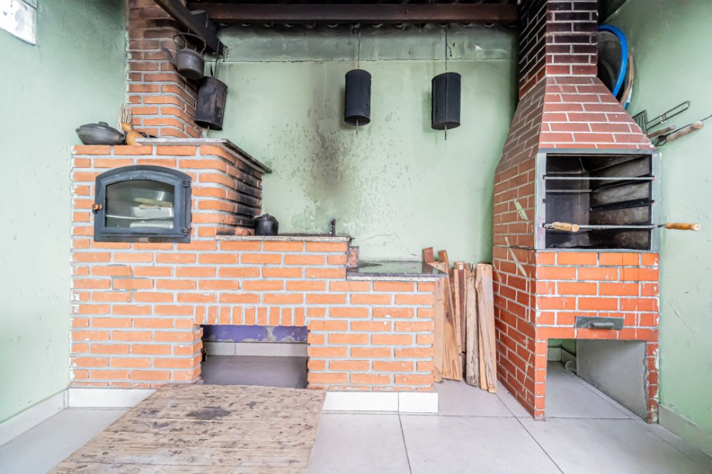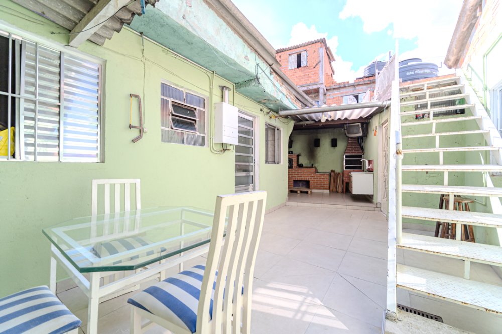 Espaçosa casa térrea em Osasco com 2 quartos arejados, sala para 2 ambiente com acesso amplo para a cozinha, armários planejados na cozinha, pia em mármore e piso cerâmica, banheiro, área externa com churrasqueira, forno a lenha e pia de apoio e uma dependência de empregada que pode ser usado como um quarto adicional, quintal com muito verde e uma área na parte superior da casa com vista 360º e estrutura para construção do segundo andar.
