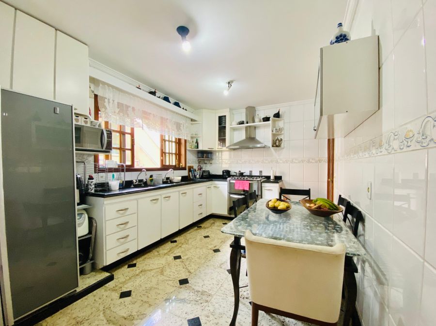 A cozinha é completa, equipada com móveis planejados, oferecendo praticidade e organização no dia a dia. O imóvel também dispõe de dependência de empregada.